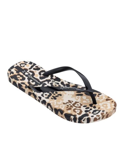 כפכף אצבע עם רצועות מבריקות ופרינטים חייתיים במראה סופר אלנגטי ושיקי