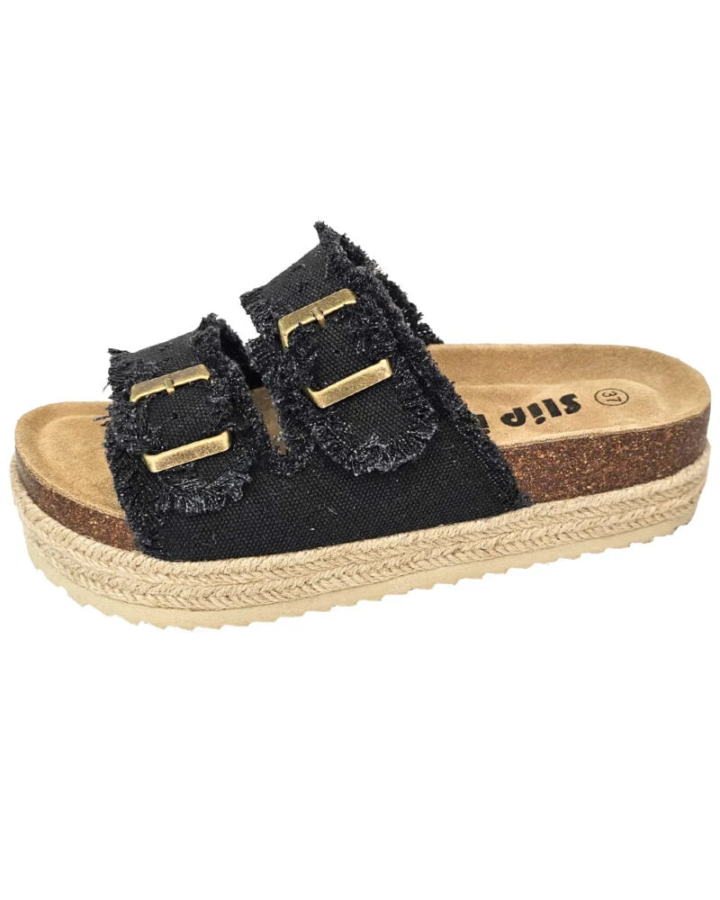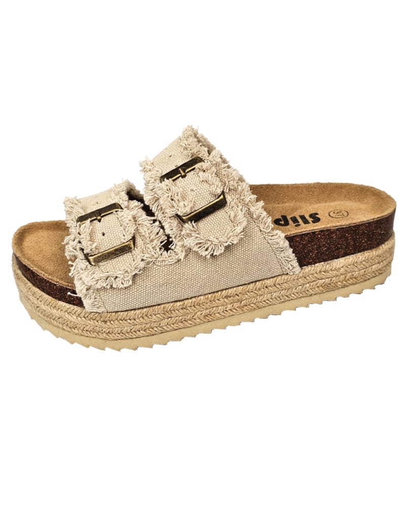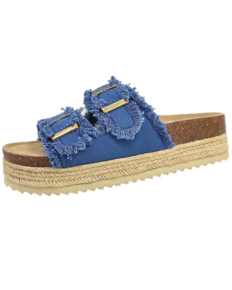 כפכפי רצועות לנשים עם סיומת פרנזים בשילוב סוליית פלטפורמה חבלים.