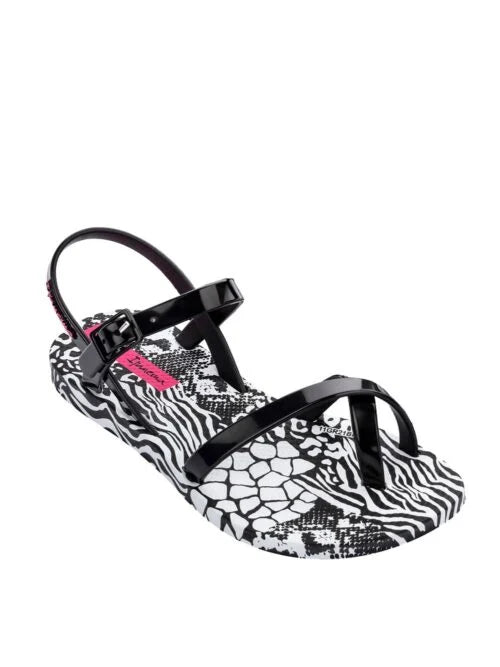 סנדל רצועות מצטלבות בצבעים שונים עם הדפס חייתי בעיצוב קיצי מושלם לילדות שיוכלו להסתובב בנוחות ובסטייל כל הקיץ