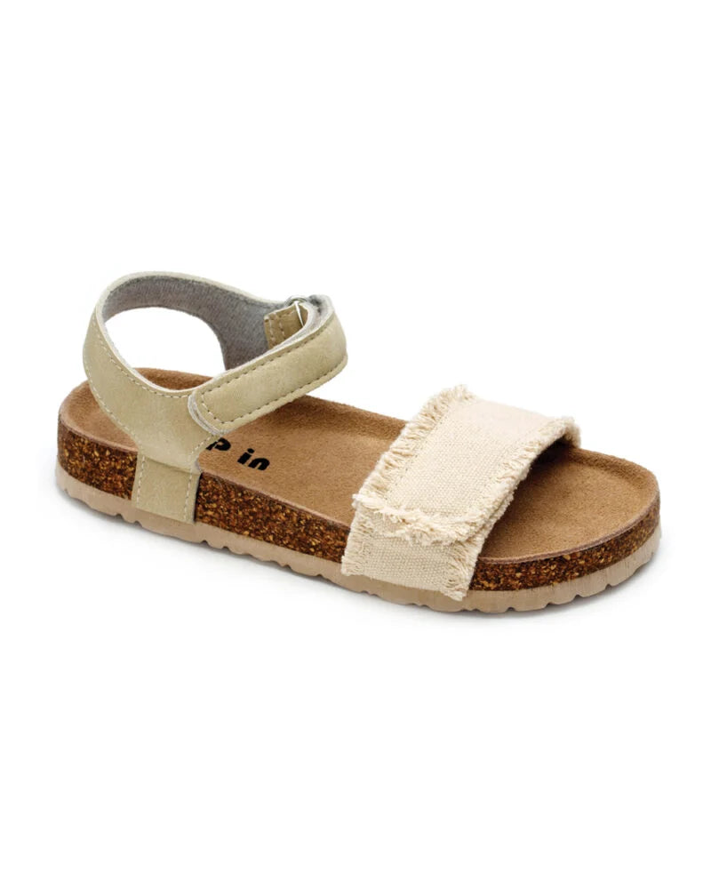 סנדל ילדים קל ונוח עם רצועות בד מתכווננות, סגירת סקוץ' נוחה וסוליית שעם עם רפידה מרופדת לנוחות מקסימלית בכל צעד